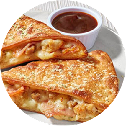 Mozzarella, pepperoni, jambon, émietté de bœuf, le tout dans une fine pâte croustillante *